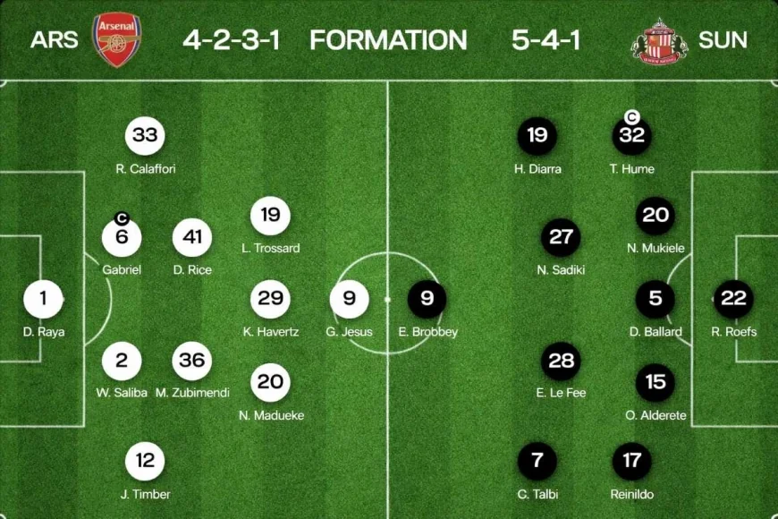 For Arsenal: Rice, Jesus, and Trossard. For Sunderland: Brobbey and Diarra.